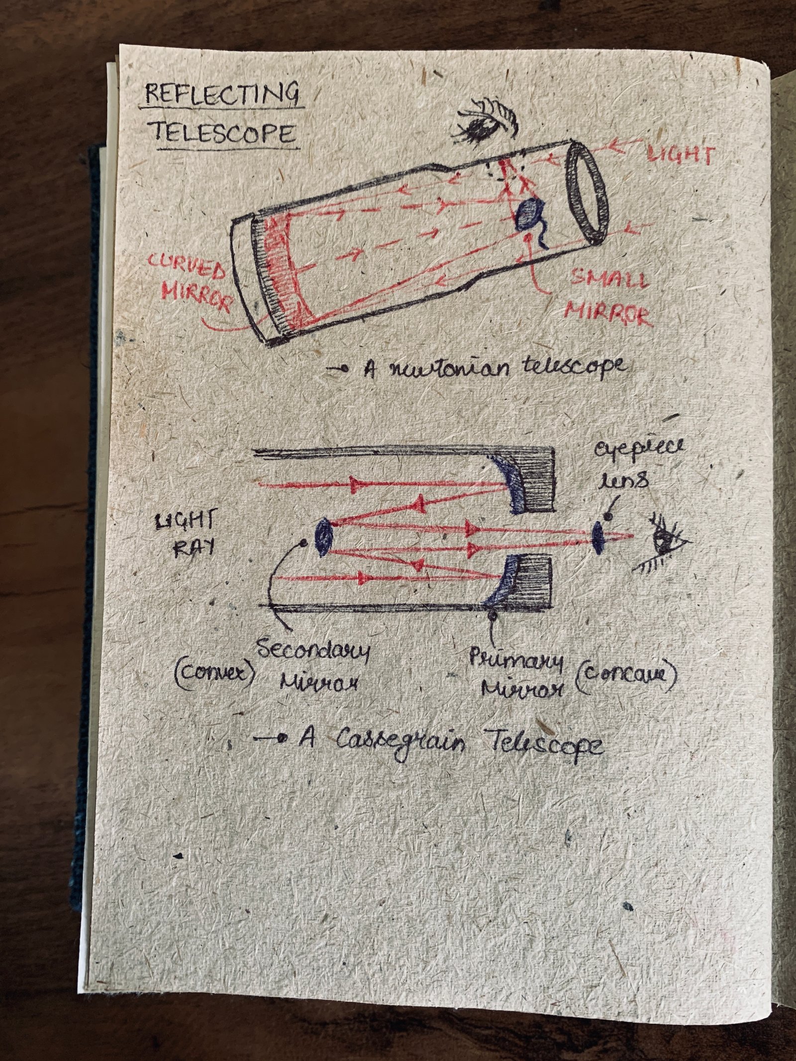 Working of Newtonian Reflecting Telescope vs Cassegran Reflecting Telescope