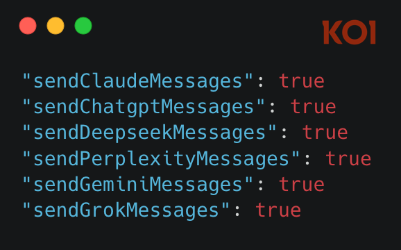 For each platform, the extension includes a dedicated “executor” script designed to intercept and capture conversations. The harvesting is enabled by default through hardcoded flags in the extension’s configuration: