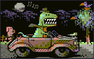 Commodore 64 petscii pictures as rendered with unscii-8, using the