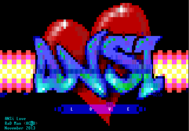PC ansi: Ansi Love by Rad Man, as rendered with unscii-16.