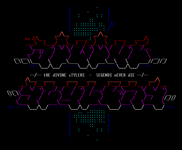 Amiga ansi: Divine Stylers by Hellbeard, as rendered with unscii-16.
