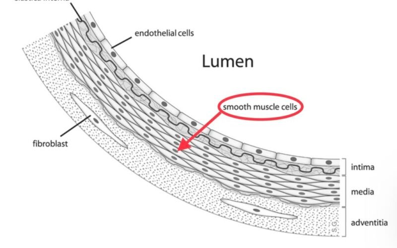 All blood vessels are wrapped by a thin sheathe of vascular smooth muscle cells (VSMCs). The current scientific consensus has the vasculature system as a spiderweb of ever-narrower channels for blood, powered by the heart as a central pump, and supporting systems such as the brain, stomach, limbs, and so on by bringing them nutrients and taking away waste. The sheathe of muscle wrapped around blood vessels undulates in a process called “vasomotion” that we think helps blood keep circulating, much like peristalsis in the gut helps keep food moving, and can help adjust blood pressure.