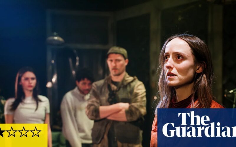 Or so it seems, because things are very ambiguous in this experimental production. Created by director Adam Linson, Stu Barter, Rachel Pellman, Annabelle Lee Revack, Darren Clarke, and Shay Bolton Richards, it brings an electric folk sound to small stories in two time zones. There are the survivors of the apartment tower – it’s not clear what century they’re in until towards the end when they mention the year 2425 – and a second story set in the past which may be set in the 1990s (there’s talk of DVDs) in which a couple move into a luxury high-rise overlooking the Thames (same flat on the 16th floor?).