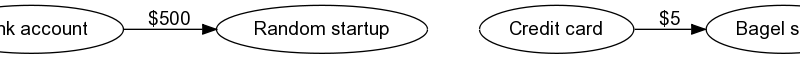 Each transaction is an edge in our graph, and the edge is labelled with the amount.