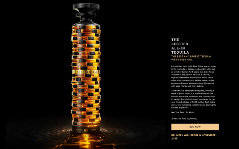 The hitch was the unusual bottle. “The handmade bottles took a little longer to make than expected, but the bottles started shipping last week!” Calacanis said. The bottle is designed as a collector’s item and looks like a stack of poker chips lit from below. He pays homage to the game of poker, one of the podcast hosts’ favorite pastimes along with drinking tequila.