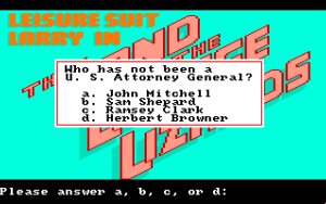 Roar: That brings me to the first Leisure Suit Larry game. It had all these questions at the start that was usually based on American pop culture or politics.
