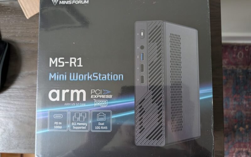 Then Minisforum introduced the MS-R1 Mini PC. Two MS-01s were already incumbent in my homelab when they replaced power-hungry HPE towers, but the MS-R1 gave me what I wanted: a reasonably powerful ARM machine which doesn’t have bank-breaking Mac pricing.