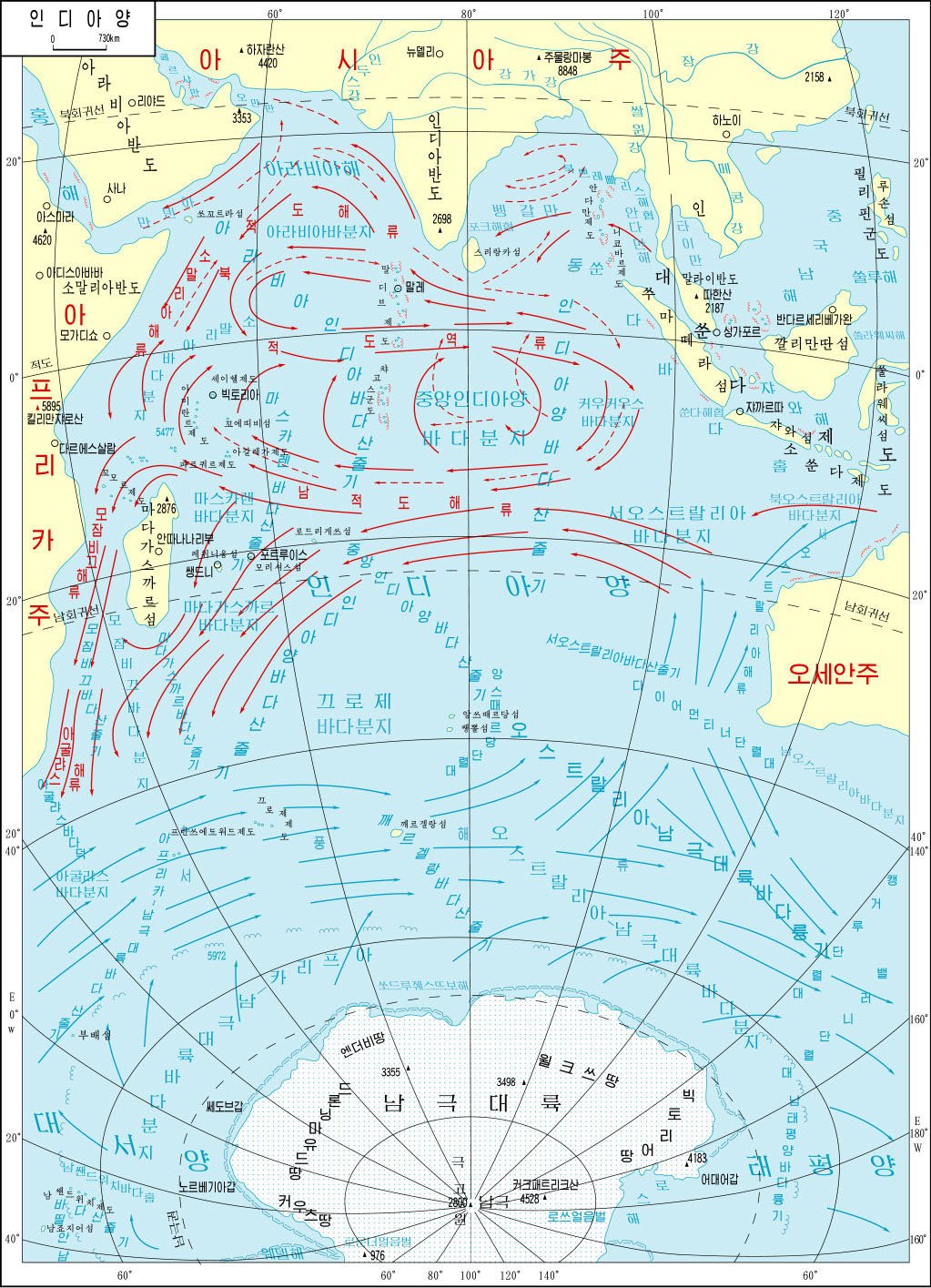 The encyclopaedia also includes maps of all the oceans, which also incorporate ocean current patterns.