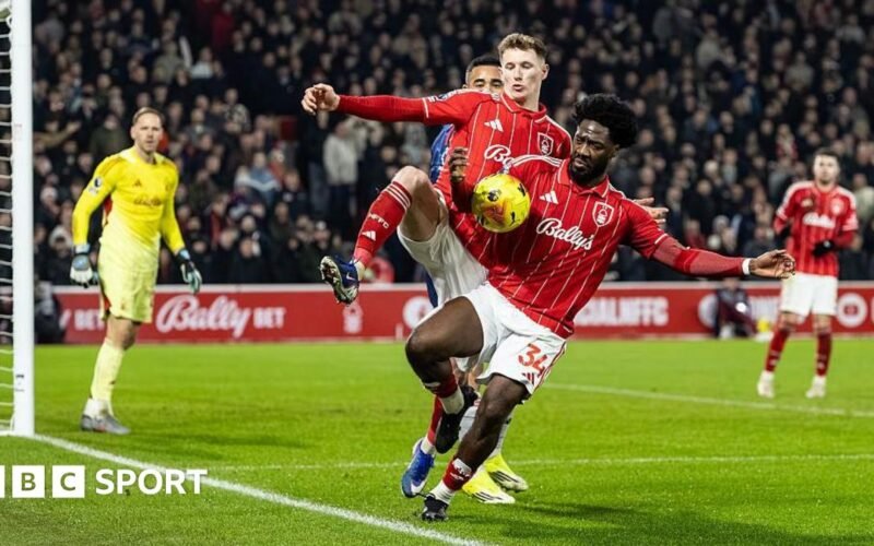 The Forest right-back attempted to control the rebound in his own penalty area as he was challenged by Gabriel Jesus and collided with teammate Elliot Anderson.