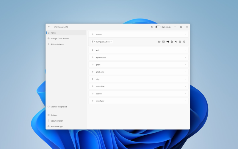 WSL Distro Manager is a free and open source app that provides a user-friendly graphical interface for managing Windows Subsystem for Linux (WSL) distributions. With WSL Distro Manager, you can easily install, uninstall, update, backup and restore WSL distros, as well as configure their settings and launch them with a single click. WSL Distro Manager also offers some extra features to enhance your WSL experience, such as sharing Distros between multiple machines, and creating actions to quickly do repetitive tasks. Whether you are a beginner or an expert in WSL, WSL Distro Manager will help you get the most out of it.
