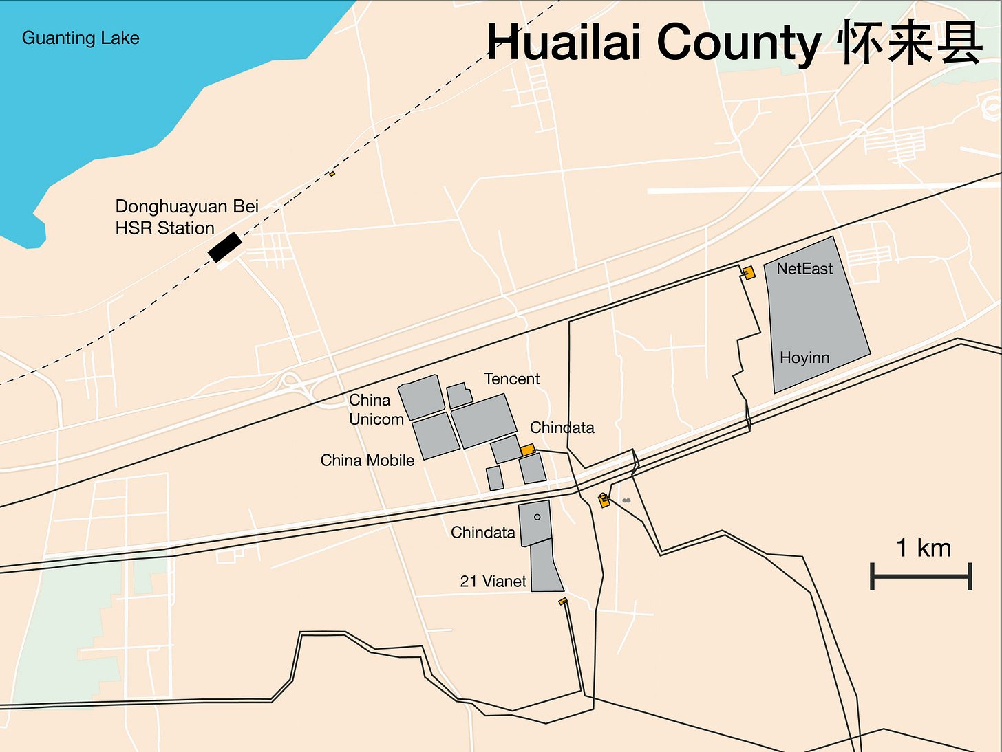 Huailai County怀来县 is ground zero for Zhangjiakou’s data center boom. Adjacent to Beijing’s Yanqing County 延庆县, home to the famous Badaling section of the Great Wall, Huailai has an ideal climate for data centers (and wine grapes, as well). Proximity to Beijing offers low latency for real-time computing needs. The 2022 Winter Olympics, which were mostly hosted in Zhangjiakou, resulted in a boom of investment in infrastructure and housing. Like many cities in China, Zhangjiakou is heavily in debt. New housing flats constructed a few years ago are mostly empty, some of them purchased by Beijing residents looking for a cheap place to retire or visit in the summers, when the area is cooler than the capital. Wind turbines blanket the area, some of them dotting the shores of Guanting Lake, a large reservoir. But a local tells me these projects mostly pre-dated the data centers and provide energy to Beijing. “There hasn’t been much economic impact from the data centers. They employ some local people, but mostly in lower jobs—technician or security guards. Most of the engineers are college graduates from elsewhere, or Beijing. A high-speed rail station near the area is just a 40 min train ride to Qinghe Station, in Beijing’s Haidian District-where the country’s top universities and an important tech industry cluster is located.