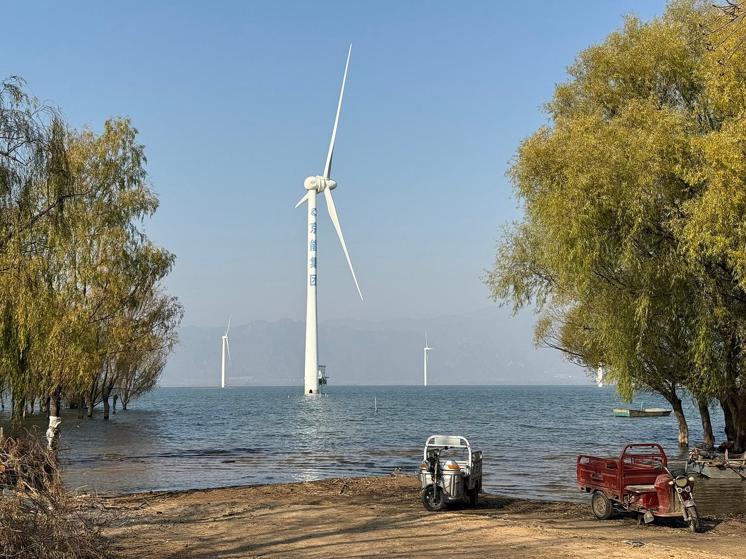 After a quick 40 min high speed rail trip from Beijing North Station, I step off the platform in the sleepy station of Donghuayuan Bei in Hebei’s Zhangjiakou. From the elevated platform I get a glimpse of the wind turbines dotting Guanting Reservoir 官厅水库. On the other side of the platform I look out across a semi-rural landscape, dotted with apartment blocks and in the distance the hulking warehouses housing new servers to power China’s computing needs. The reservoir was built in the 1950s to provide Beijing with water. In the lead up to the Winter Olympics in 2022, Zhangjiakou saw a boom in infrastructure investment, including in renewable power, much of it to supply Beijing. Now, the city is being mobilized to supply the capital again, this time with its growing cloud computing infrastructure.