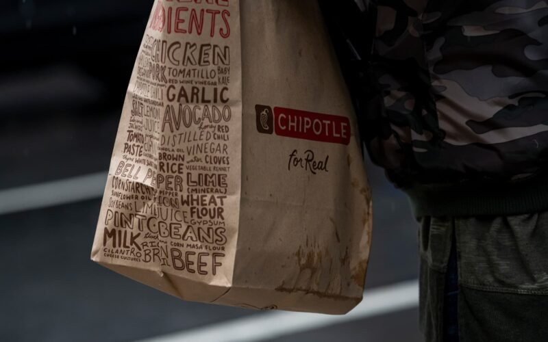 A customer holds a Chipotle bag in San Francisco, California, US, on Friday, January 31, 2025.