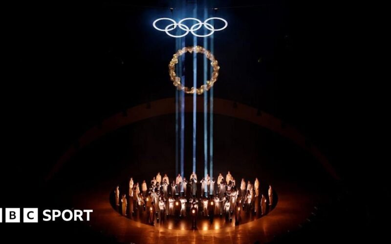 A “drop of fire” – the Olympic flame carried in a small glass bowl – was brought to the ancient arena to light the rings before the athletes’ procession.