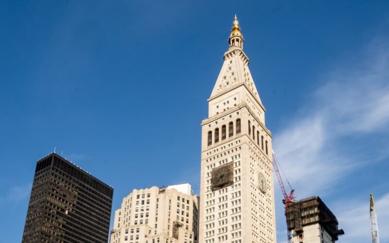 Landscape view of the Metropolitan Life Insurance Company Tower, North Building and 41 Madison, located along Madison Park in the Flatiron District of Manhattan, New York.