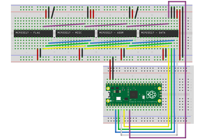 Originally, I started working with a Pi Zero, but eventually settled on a Pi Pico running MicroPython. To manage the expander chips, I created the following small class: