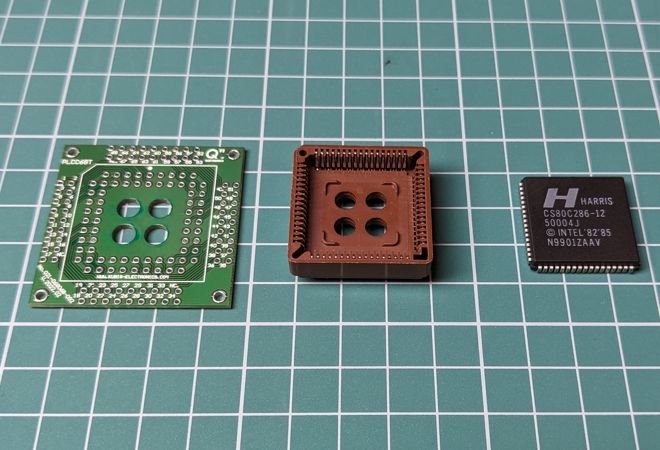 Two years ago, I ordered two (that’s how many came in a package) Harris 80C286-12 processors. My memories are a bit hazy, but I believe the C in its name is important because these are the types that are less sensitive to clock accuracy (the 12 at the end means it likes to run at 12 MHz), and can even be stepped manually.