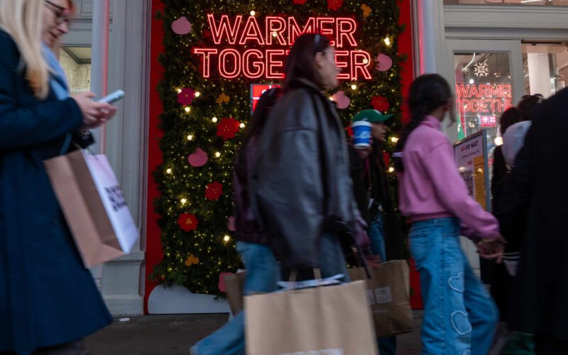 Shoppers walk through Manhattan on Nov. 7, 2025, in New York City.