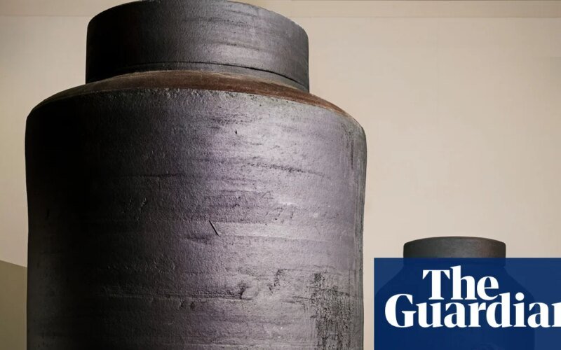 pOtter and writer Edmund de Waal, a dark silhouette of smart business clothes against the stark white of his studio, is bursting with ideas, all of them dripping from him at once. He took me on a tour of a former arms factory in an industrial area of ​​London, gently tuning in to the architectural calm. He has workstations for his employees (they’re quite functional); Store rooms and the main space were almost empty except for some giant black-lidded vessels he had made in Denmark, which were as wide as coffins. At both ends, there are secret sets of steps, places of raw creativity. One, the potter’s wheel, is the place where it is made; The other, with his desk and bookshelves, is where he writes.