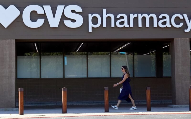 A pedestrian walks past a CVS store in Greenbrae, California, on July 31, 2025.
