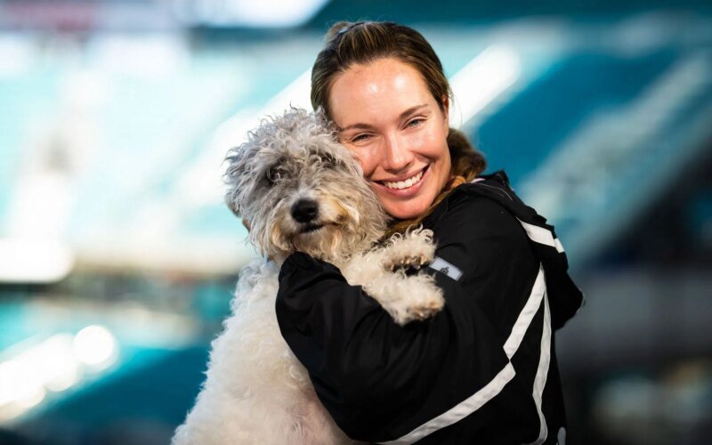 Danielle Collins shares a special moment at Hard Rock Stadium with her pet dog