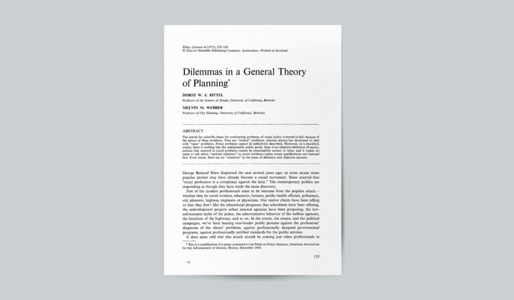 Rittel, H.W. and Webber, M.M., 1973. Dilemmas in a general theory of planning. Policy sciences, 4(2), pp.155-169.
