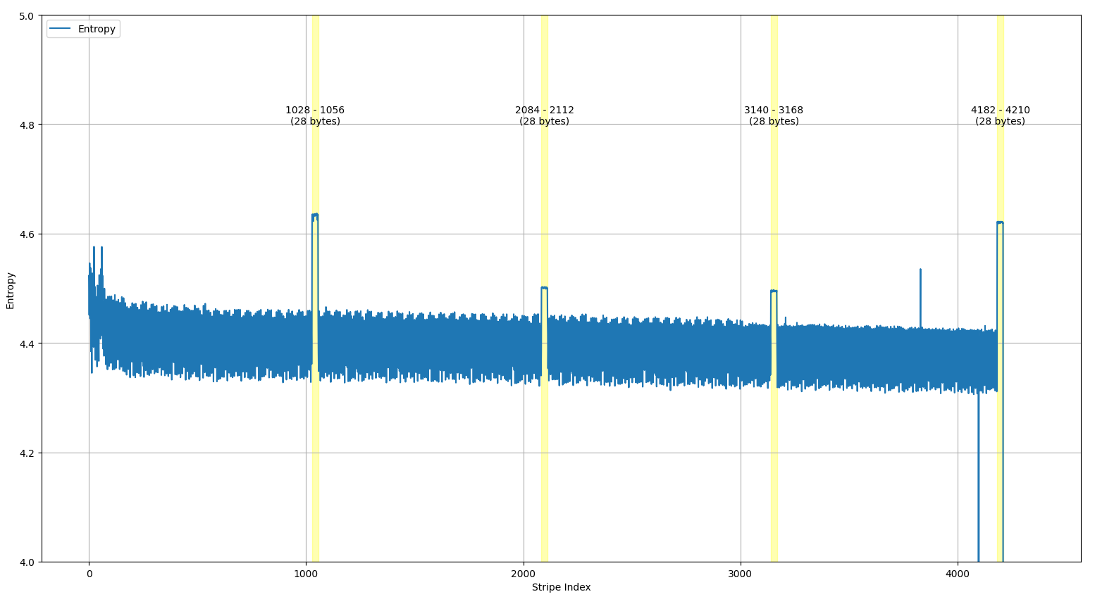 Doing that, we ended up with a 544 MiB dump, containing 131,072 pages of 4096+256 bytes. (We will come back to that “+256” later on.)