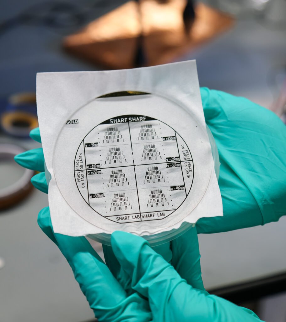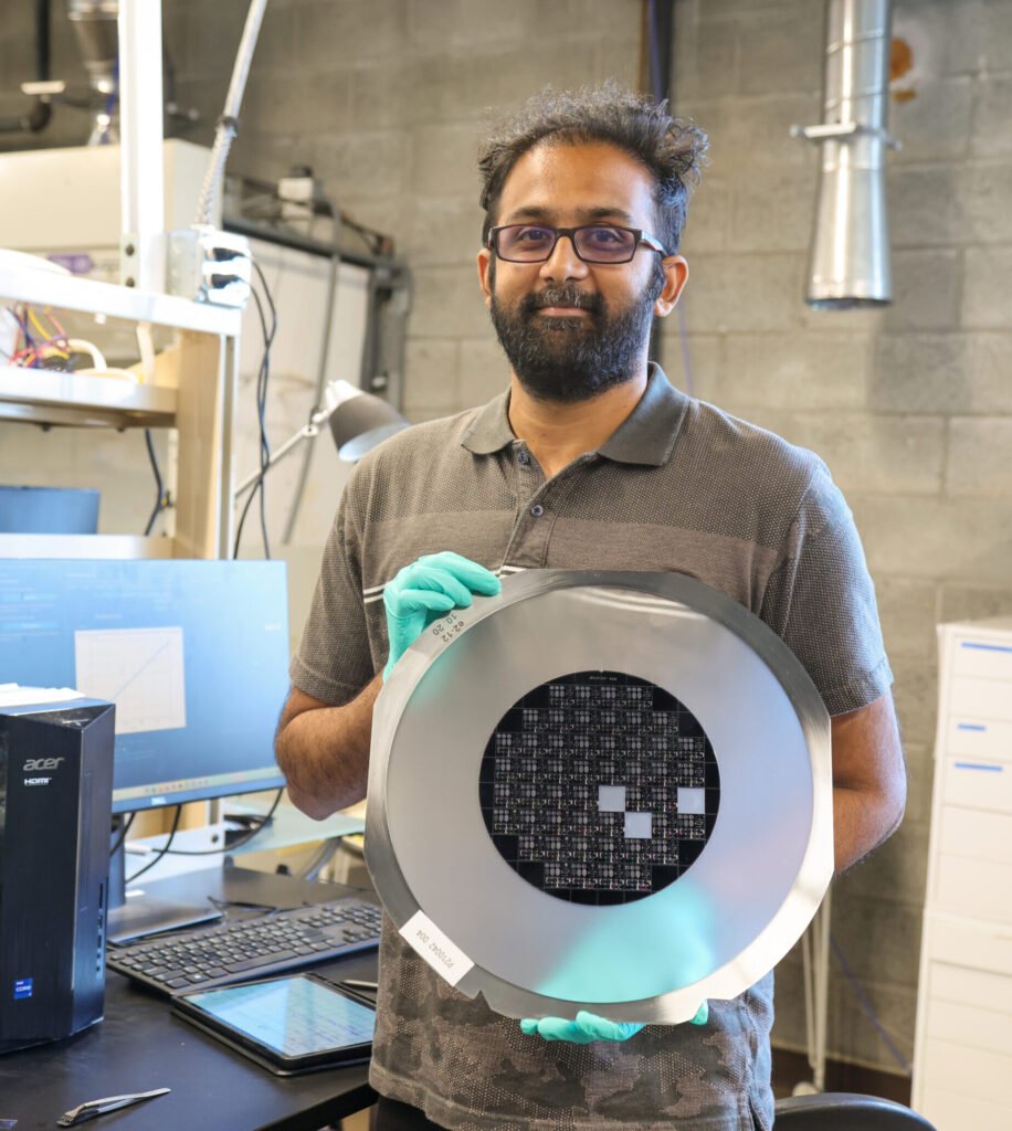 The Sharf lab is developing novel neural interfaces, leveraging expertise in physics, materials science, and electrical engineering. On the right, Koushik Devarajan, an electrical and computer engineering Ph.D. student in the Sharf lab.