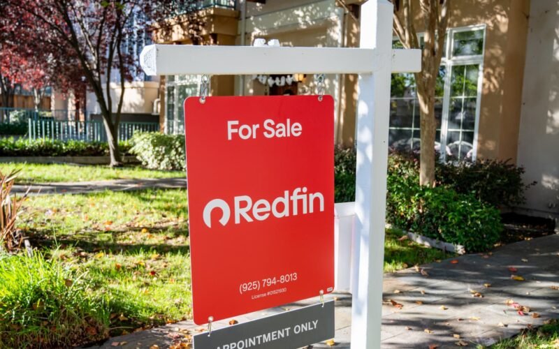 For Sale Redfin real estate sign in front of townhouse, Walnut Creek, California, October 29, 2025.