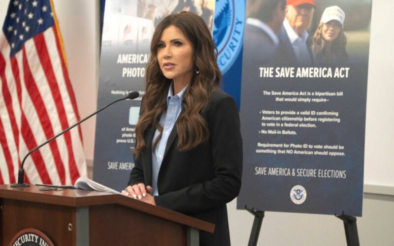 Homeland Security Secretary Kristi Noem made comments that could lead people to misinterpret her agency’s role in elections as she pushed for legislation that would require a photo ID for voting and documentary proof of citizenship for voter registration.