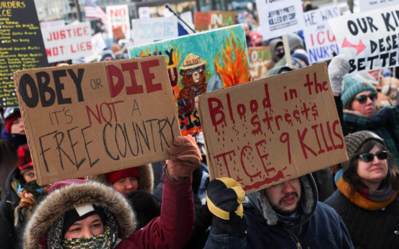 He watches: Thousands brave the bitter cold at an “ICE Out” protest in the Twin Cities