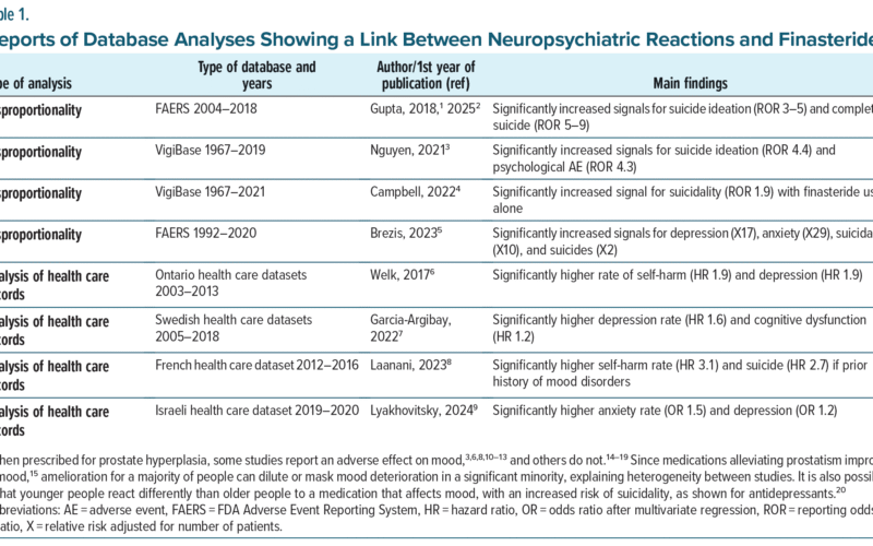 To Cite: Brezis M. Failing public health again? Analytical review of depression and suicidality from finasteride. J Clin Psychiatry 2025;86(4):25nr15862.