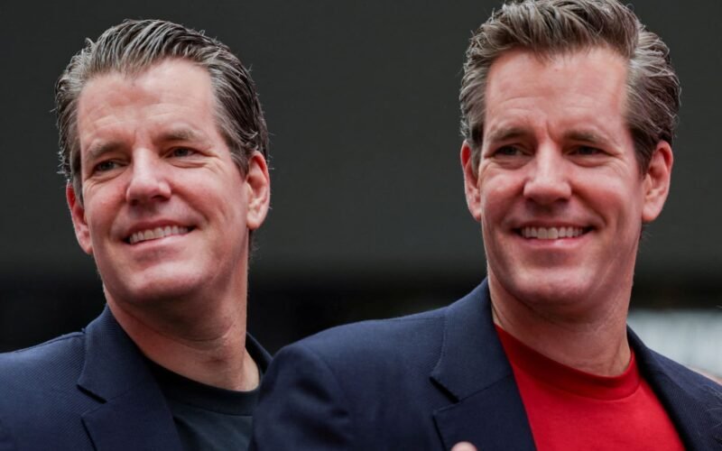 Gemini founders Tyler Winklevoss and Cameron Winklevoss attend the company’s IPO at the Nasdaq MarketSite in New York City, US, on September 12, 2025.