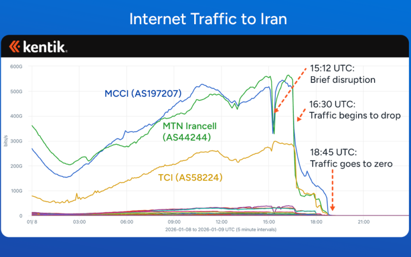 Iran is in the midst of one of the world’s most severe communications blackouts. This post uses Kentik data to detail how this historic event unfolded, where this event lies in the context of previous Iranian shutdowns, and finally discusses what might be in store next for Iran.