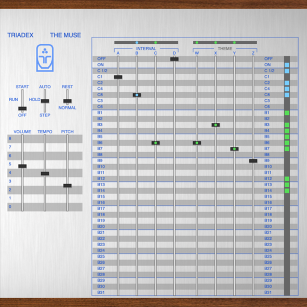 Marvin Minsky, the co-creator of the Muse, said in his 1981 paper “Music, Mind, and Meaning” that the challenge of composing music is that, “Whatever the intent, control is required or novelty will turn to nonsense.” This philosophy is hardwired into the Muse.