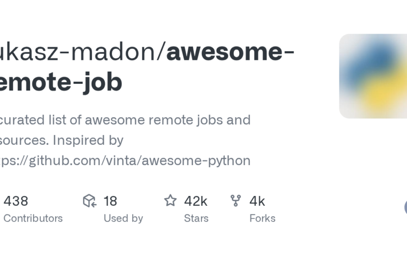 #️⃣ **#GitHub #lukaszmadonawesomeremotejob #curated #list #awesome #remote #jobs #resources #Inspired #httpsgithub.comvintaawesomepython**