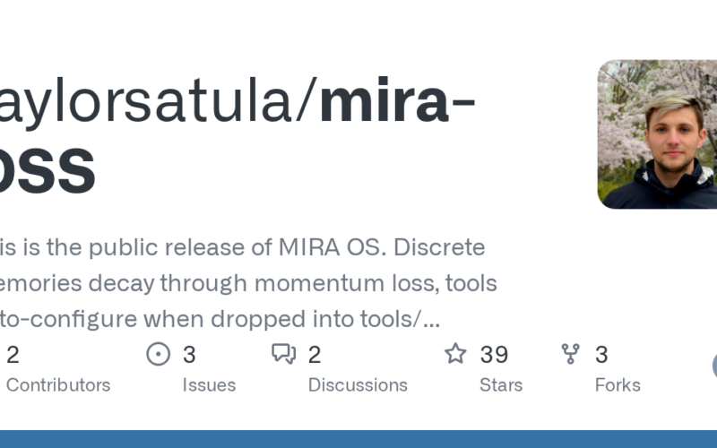 #️⃣ #GitHub #taylorsatulamiraOSS #public #release #MIRA #Discrete #memories #decay #momentum #loss #tools #autoconfigure #dropped #tools #folder #system #prompt #composes #modular #trinkets #Ive #elegant #braininbox #load #send #cURL #requests