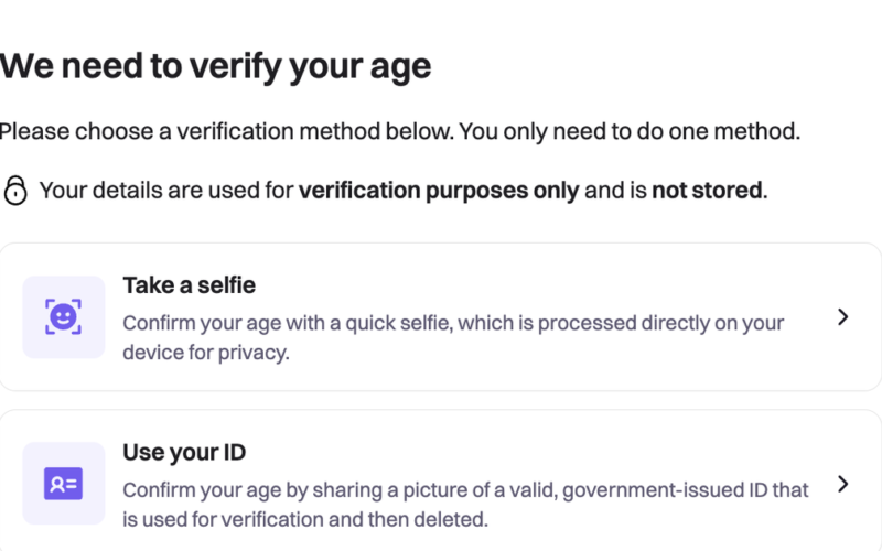 “If you’re located in the UK, you may be part of an experiment where your information will be processed by an age-assurance vendor, Persona. The information you submit will be temporarily stored for up to 7 days, then deleted. For ID document verification, all details are blurred except your photo and date of birth, so only what’s truly needed for age verification is used.”