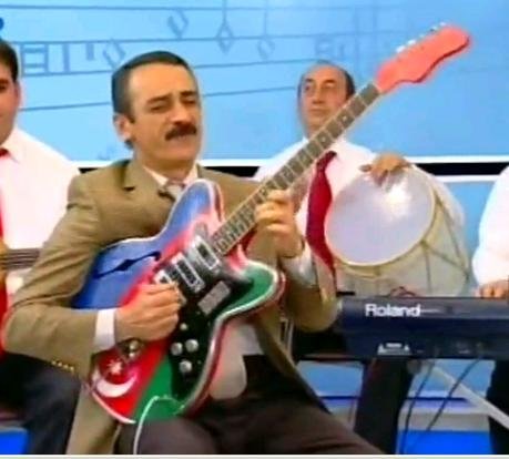 And just in case you had any doubts as to the popularity of the Jolana with Azerbaijani guitarists, I also found this picture of a Jolana with the colors of the national flag painted over the red finish. This guitar is everywhere: