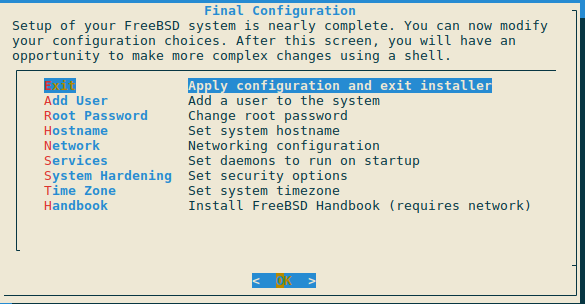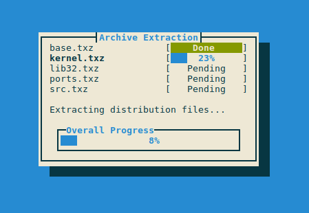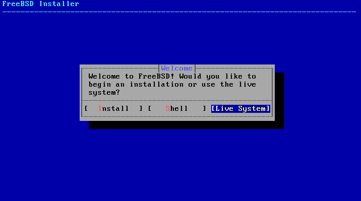 We will perform the installation over SSH using bsdinstall – boot the system in LiveCD mode, enable SSH, and then proceed with the installation from a workstation laptop.