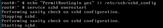 # echo "PermitRootLogin yes" >> /etc/ssh/sshd_config # service sshd onerestart