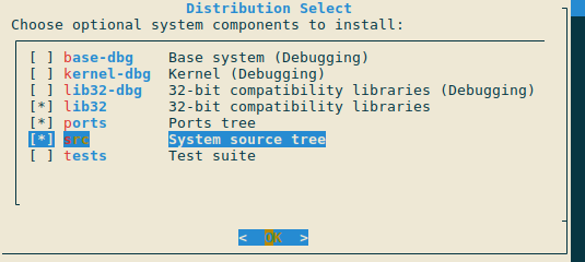 Select the components to add to the system – ports is necessary, src is optional but definitely worth it for a real NAS: