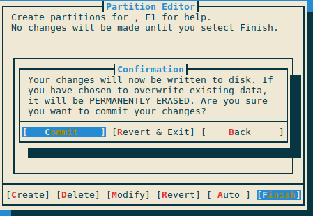 We’ll configure the rest of the disks later; for now, select Finish and Commit: