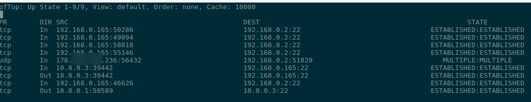 Active connections in pftop: