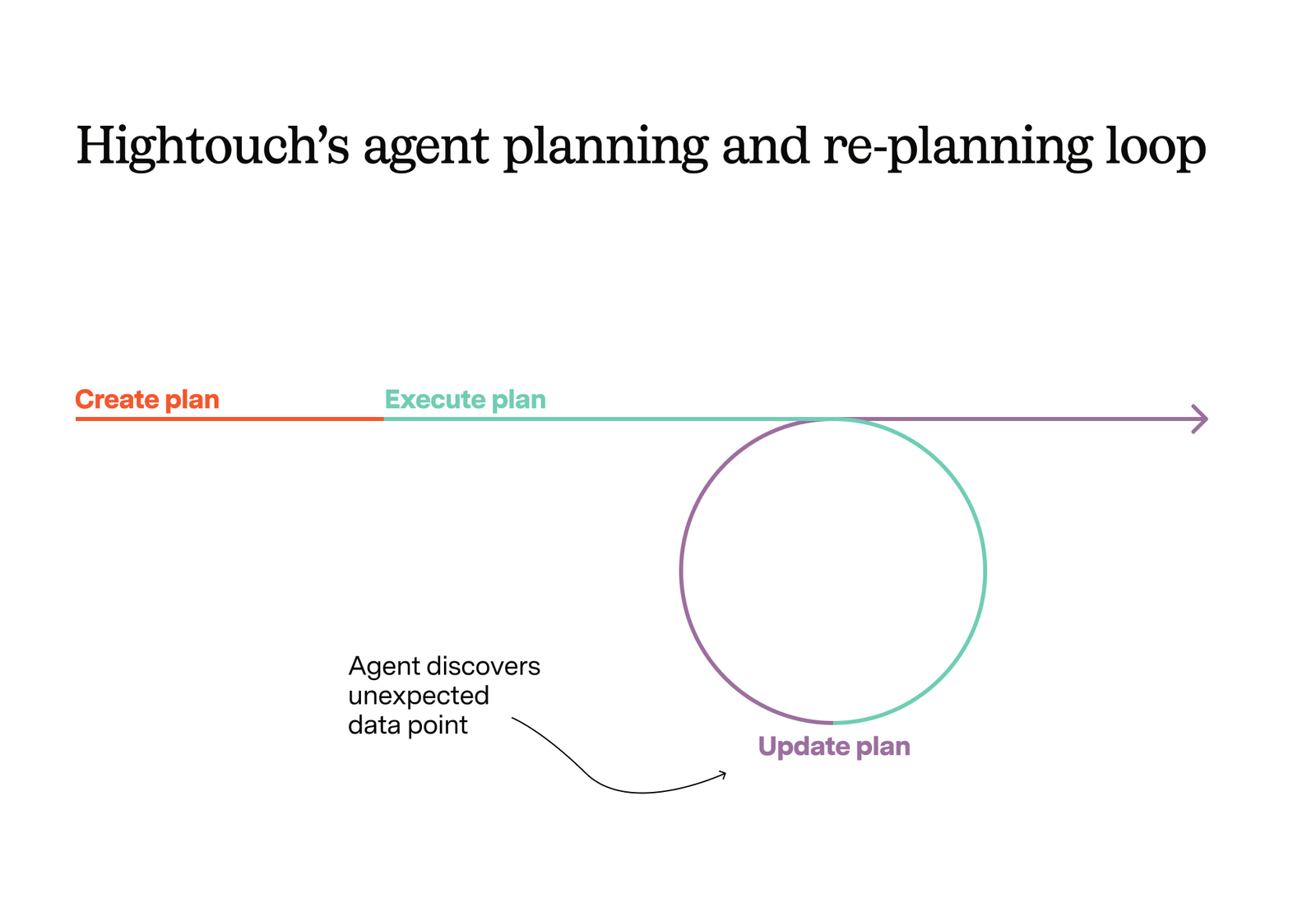 OK, simple enough. Where things get really interesting is that Hightouch’s implementation allows the model’s plan to be dynamic. As it executes the steps and learns new things grounded in the customer’s data, the model can change its mind and generate a new plan. Not quite continual learning, but it’s a start!