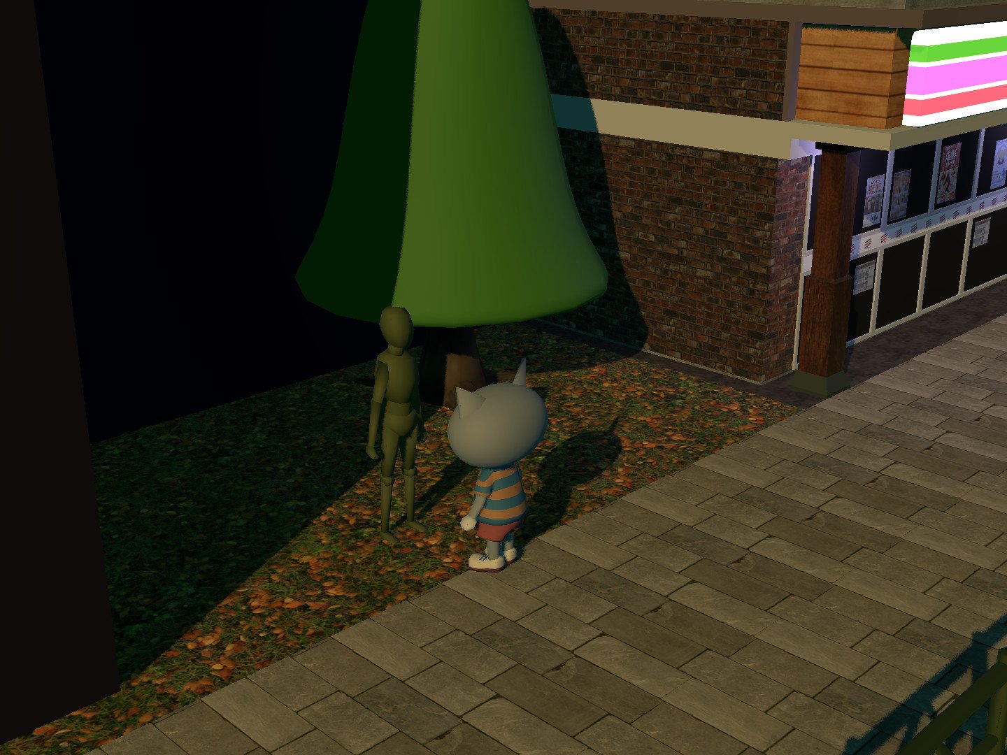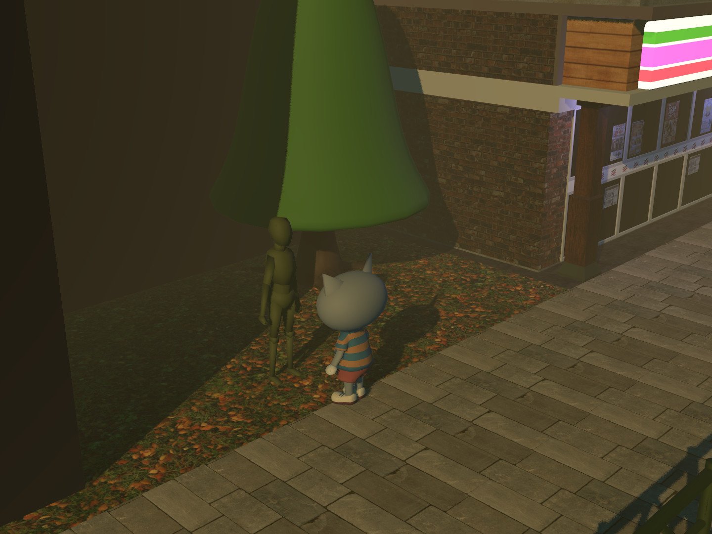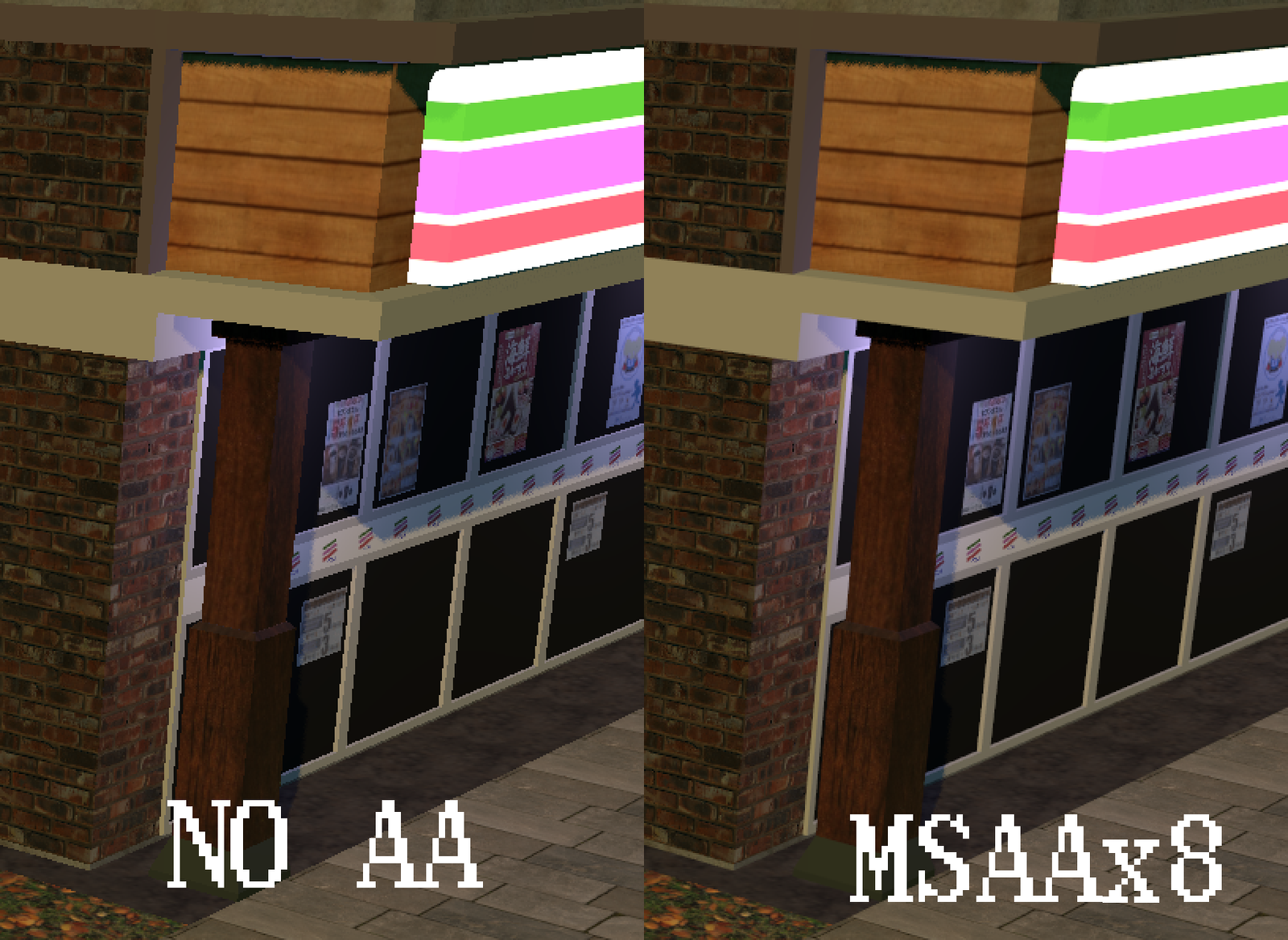 Using forward rendering allowed me to easily implement MSAA. Here’s a comparison of how the game looks without AA and with MSAA on:
