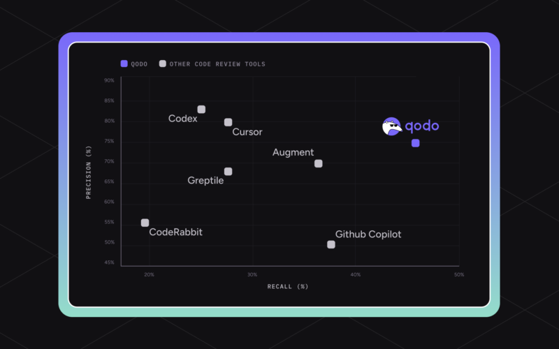 This blog introduces the Qodo’s code review benchmark 1.0, a rigorous methodology developed to objectively measure and validate the performance of AI-powered code review systems, including Qodo Git Code Review. We address critical limitations in existing benchmarks, which primarily rely on backtracking from fix commits to buggy commits, thereby narrowly focusing on bug detection while neglecting essential code quality and best-practice enforcement. Furthermore, previous methods often utilize isolated buggy commits instead of simulating a complete pull request (PR) review scenario on genuine, merged PRs, and are constrained by a small scale of PRs and issues.