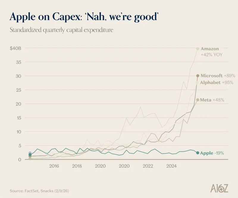 Apple, by contrast, has spent almost nothing on AI infrastructure and subsidising users’ token burn. And this may be giving them more optionality and leverage than any of the other companies that jumped heads first into the AI race.