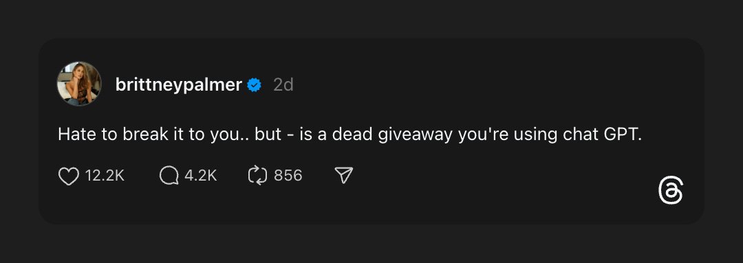 There’s a growing community (cult?) of self-proclaimed AI detectives, who have designed and detailed what they consider tells, and armed their followers with a checklist of robotic tells. Does a piece of text use words like ‘furthermore’, ‘moreover’, ‘consequently’, ‘otherwise’ or ‘thusly’? Does it build its arguments using perfectly parallel structures, such as the classic “It is not only X, but also Y”? Does it arrange its key points into neat, logical triplets for maximum rhetorical impact?