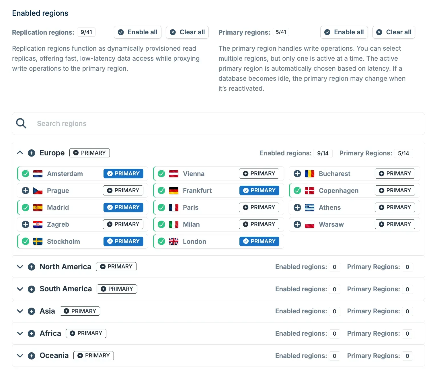 - Manual region selection gives you custom multi-region setup, where you can freely pick regions that make the most sense for your audience.